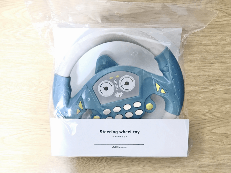 ハンドル操作もでき、音も出る仕様で550円とは、コスパも抜群のおもちゃですね。