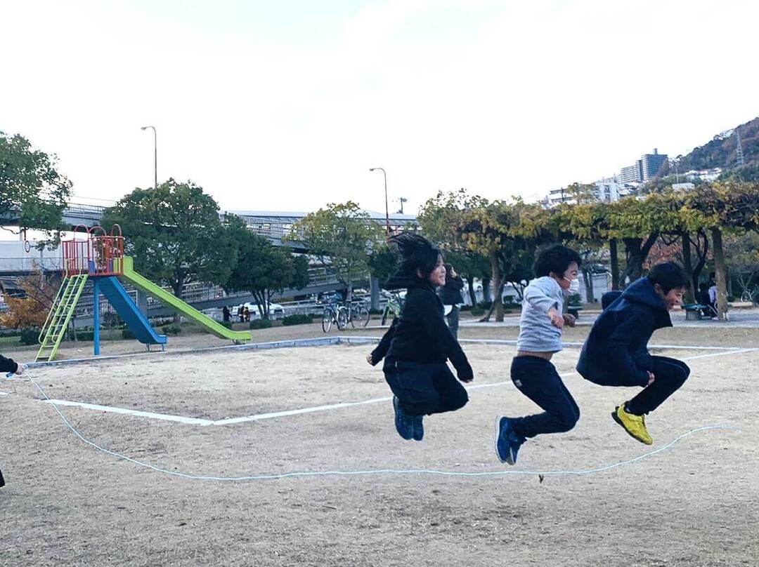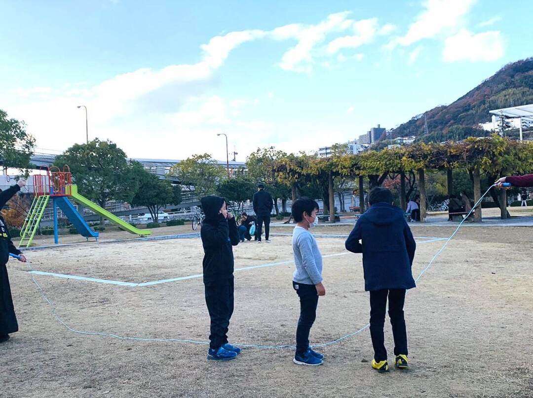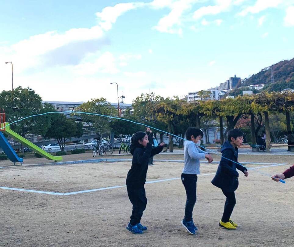 「小学生の中では当たり前だよ」なんて言われましたが、この方法を使えば少人数やおやこ2人のときでも大縄跳びが楽しめそうですね。