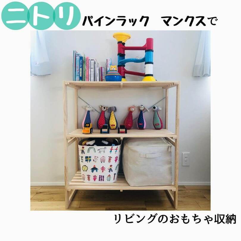 極力リビングに家具を増やしたくない…ということで、べに子さんがおもちゃ収納に選んだのは、ニトリのパインラック マンクス。