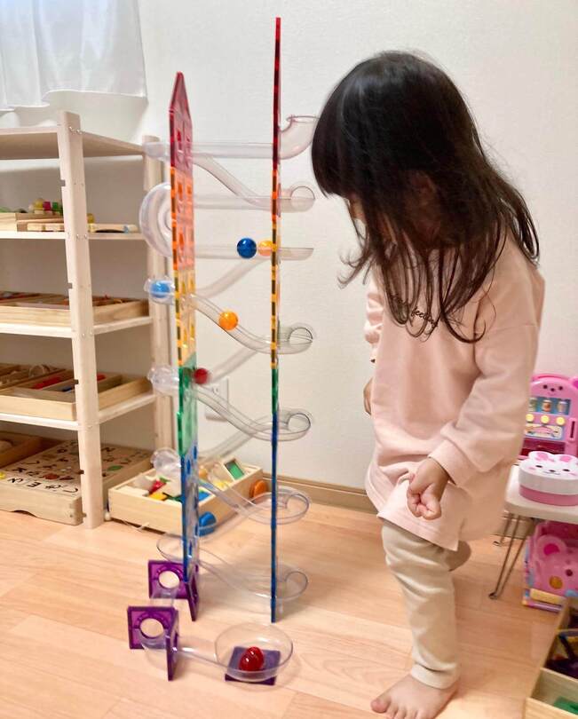 さまざまなパネルを組み合わせて自由に組み立てることで創造力がふくらみ、立体的な作品を作ることで空間認知能力も育まれそう。また、ボールコースター遊びでは、設定したスタートからゴールまでボールを運ぶ道を作ることで論理的思考力を養います。