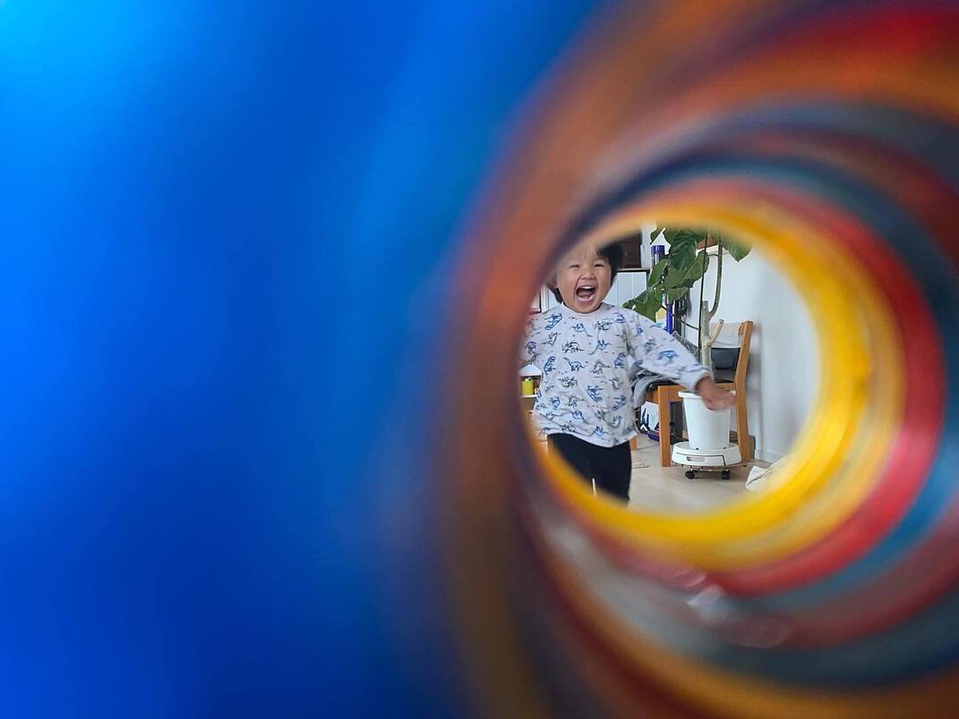 穴をのぞいていろいろなものを観察すると楽しいことを発見したお子さん。その様子がおもしろそうで、ママが貸してもらってのぞいてみると…