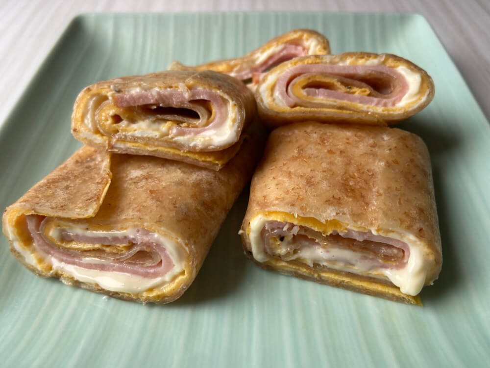 ハムやベーコン、チーズ、卵をくるっと巻いて食べるのが本場流とのこと。さっそくいろいろな具材を巻いて作ってみました。