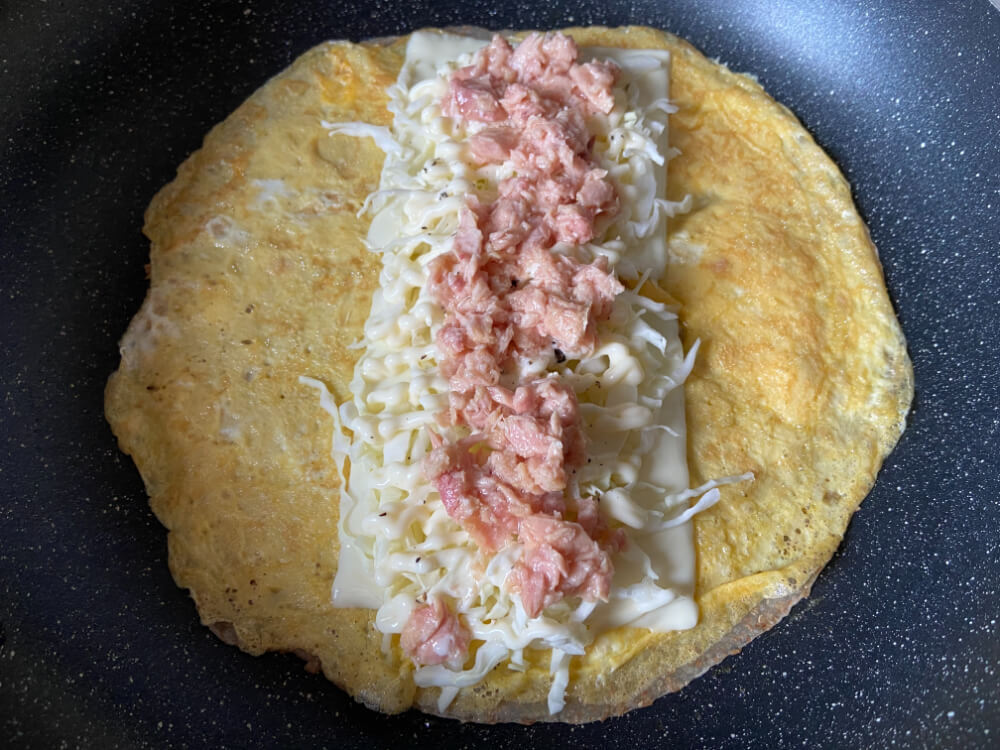 つづいては卵、チーズ、千切りキャベツ、ツナマヨをのせて巻いたツナマヨ&キャベツ。