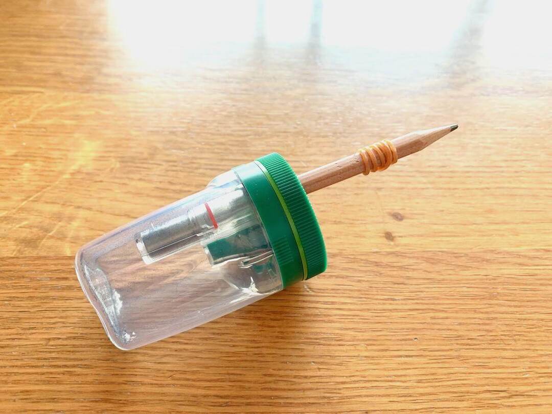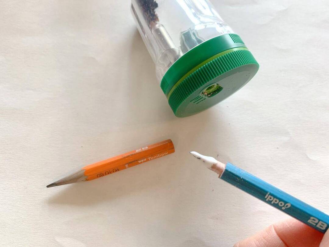 完成!1本目の鉛筆の底にしっかり穴があきました!