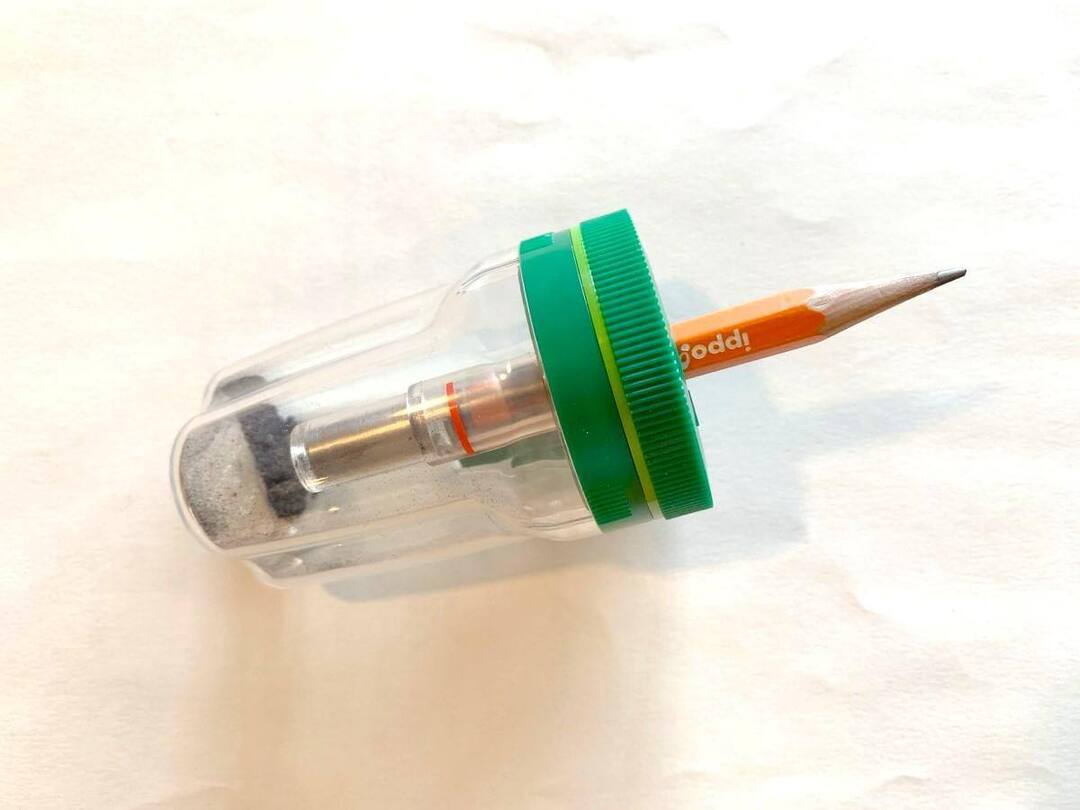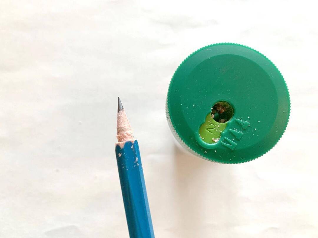 画像のように、赤い線に達するまで鉛筆を回して削ります。初めての挑戦だったので力加減が難しく、息子と交代しつつ、ここまででなんと30分かかりました。最初はおやこで挑戦するのが良さそうです…。