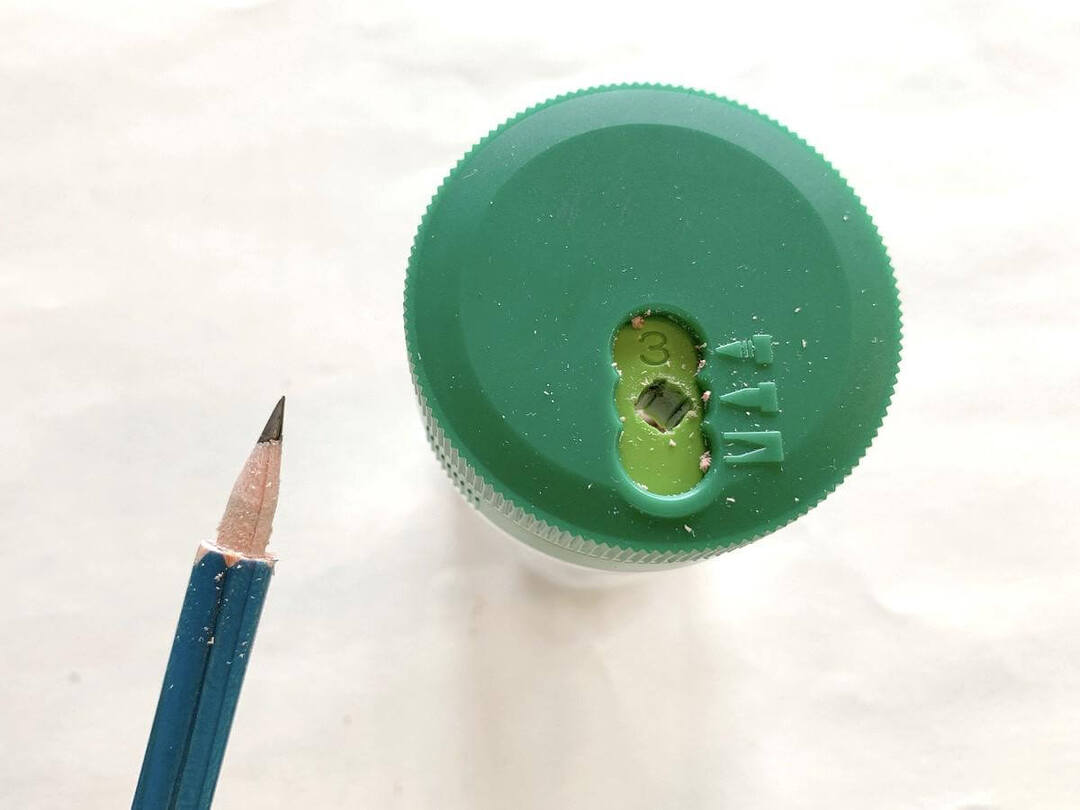 「3」の穴で先端の角度・表面をなめらかに整えます。コツをつかんだこともあり、2本目の鉛筆を削る作業は5分ほどで完了しました!