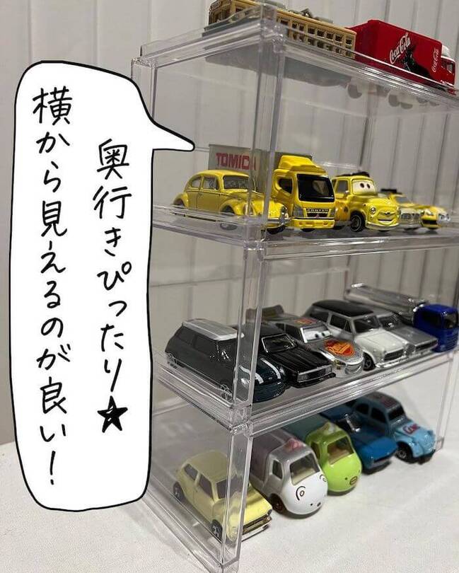 トミカをコレクションとして飾りたい場合には、コレクションケースなどに入れて「見せる収納」にするといいでしょう。