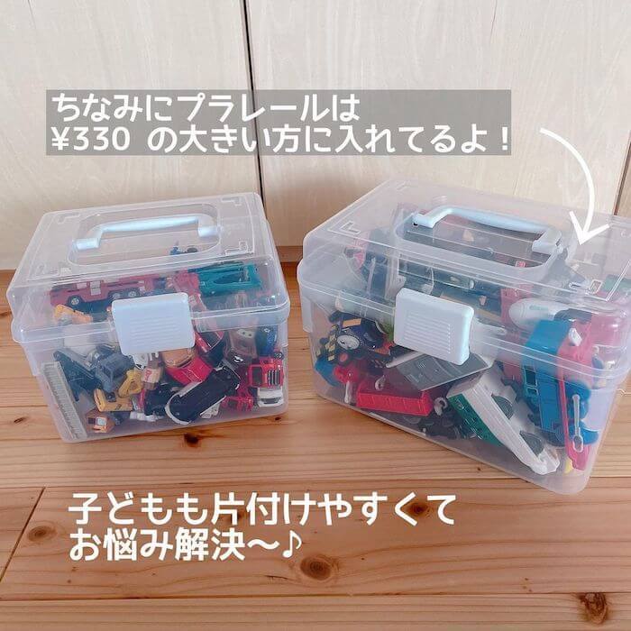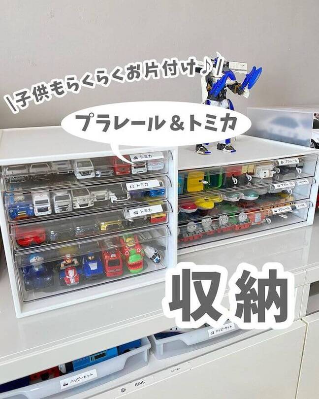 半透明のケースなのでどこにどの車が入っているかもわかりやすく、息子さんも自分できっちり片付けてくれるそうです!