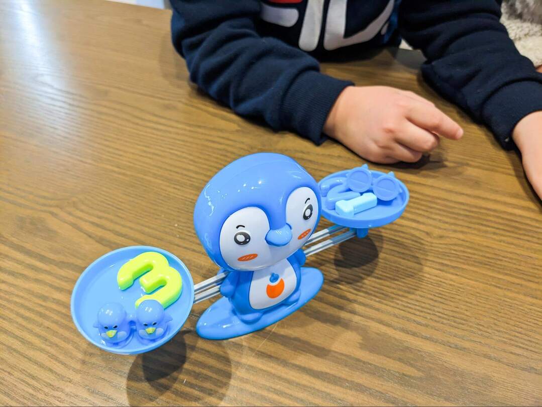 さらにペンギンの数と数字の重さが釣り合うように作られているので、視覚的に数の大きさがわかるというしくみです。