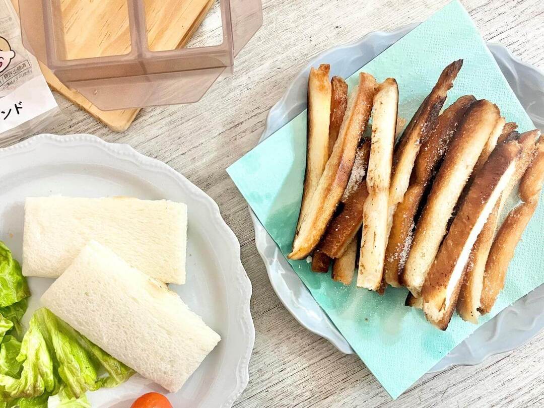 ミニパックサンドを作ったあとは、どうしても食パンの耳が余ってしまいますよね。そこで、パンの耳を油で揚げておやつも作ってみました!子どもも大喜びしてくれたので、ぜひパンの耳まで残さず食べてくださいね。