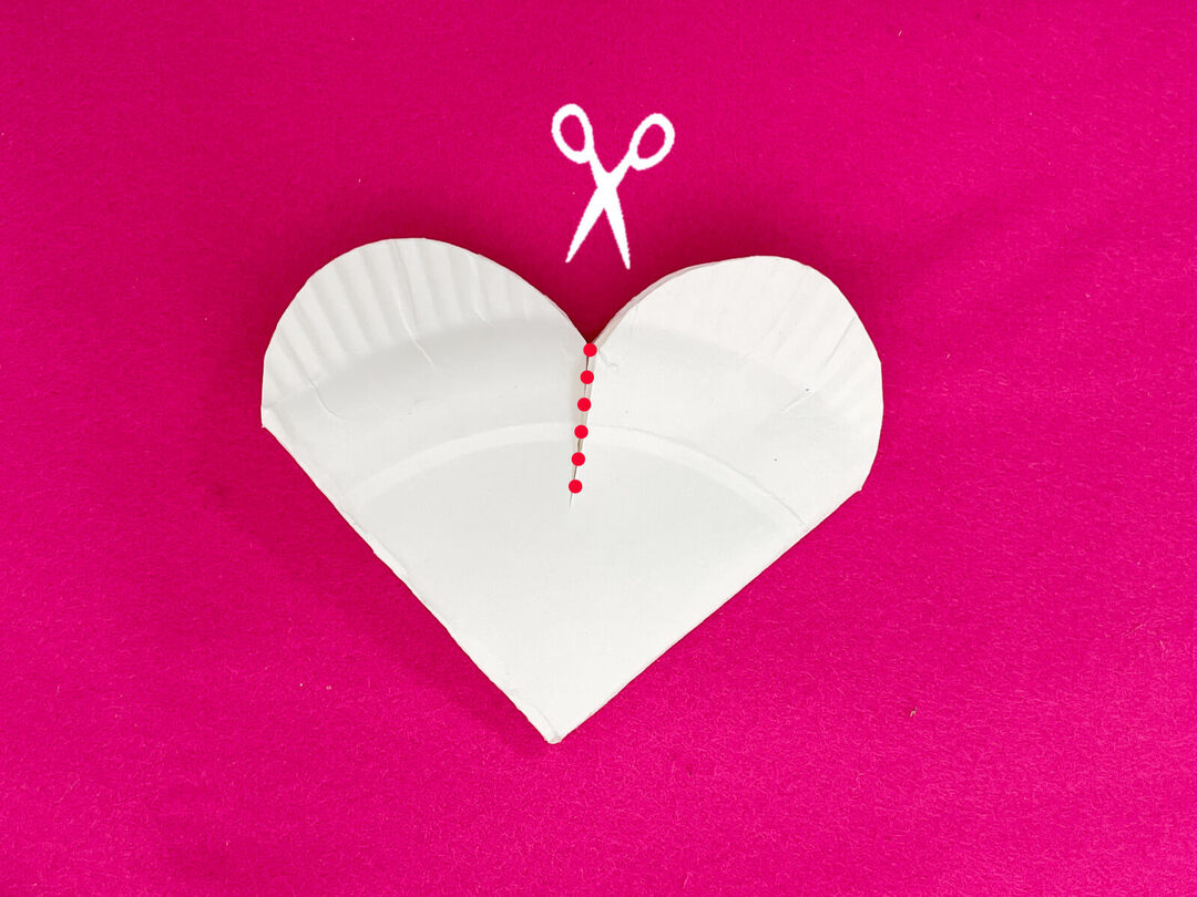 そのままハートの真ん中部分に、数cmはさみで切り込みを入れます(中心から2cm程度残っていればOKです)。