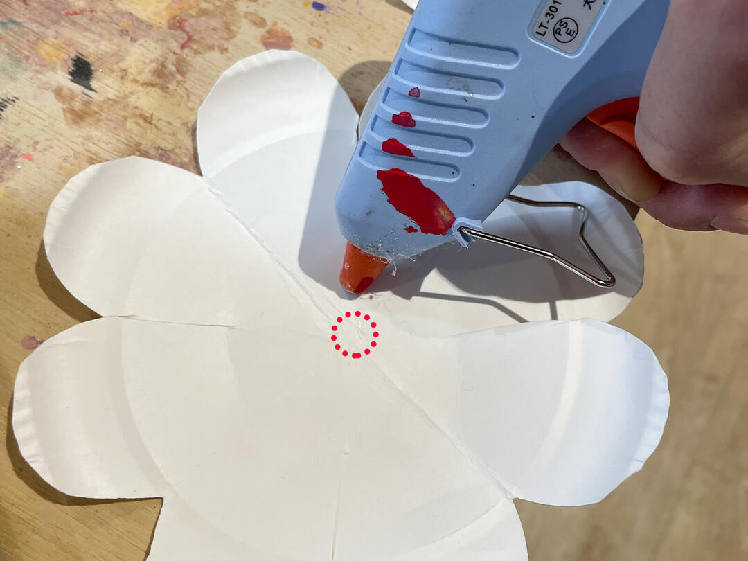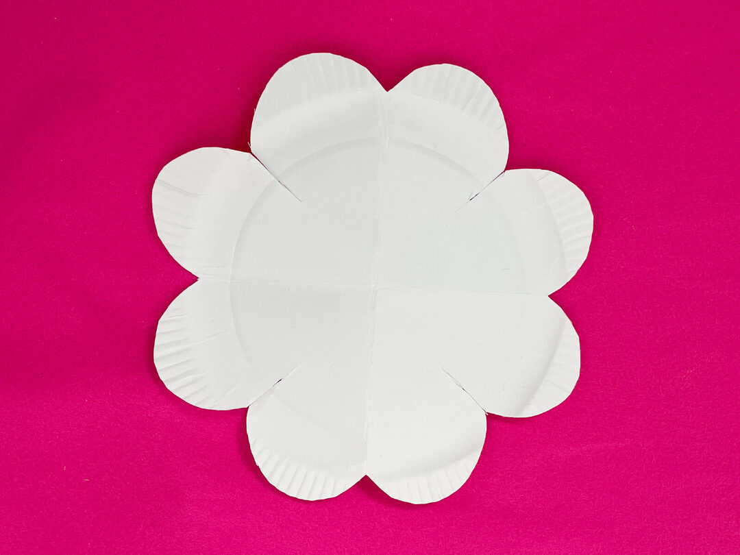紙皿は直径18cmのものを使用しましたが、どんなサイズでもOK!使う枚数はつけたい花びらの数に合わせて増減してください。