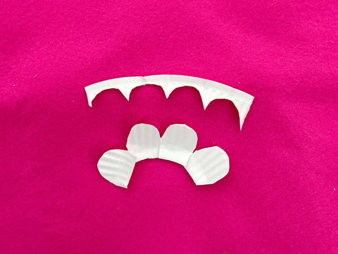 花の中心になる一番小さな花びらパーツは、カットして余った縁の部分を使って画像のような4つの山型に切ります。