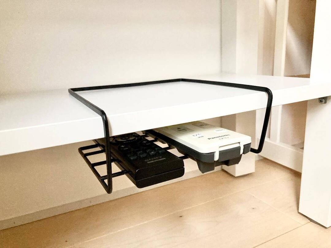テレビボードやテレビ周りの棚にディッシュラックを差し込んで、リモコン置き場にしてもよさそうです!