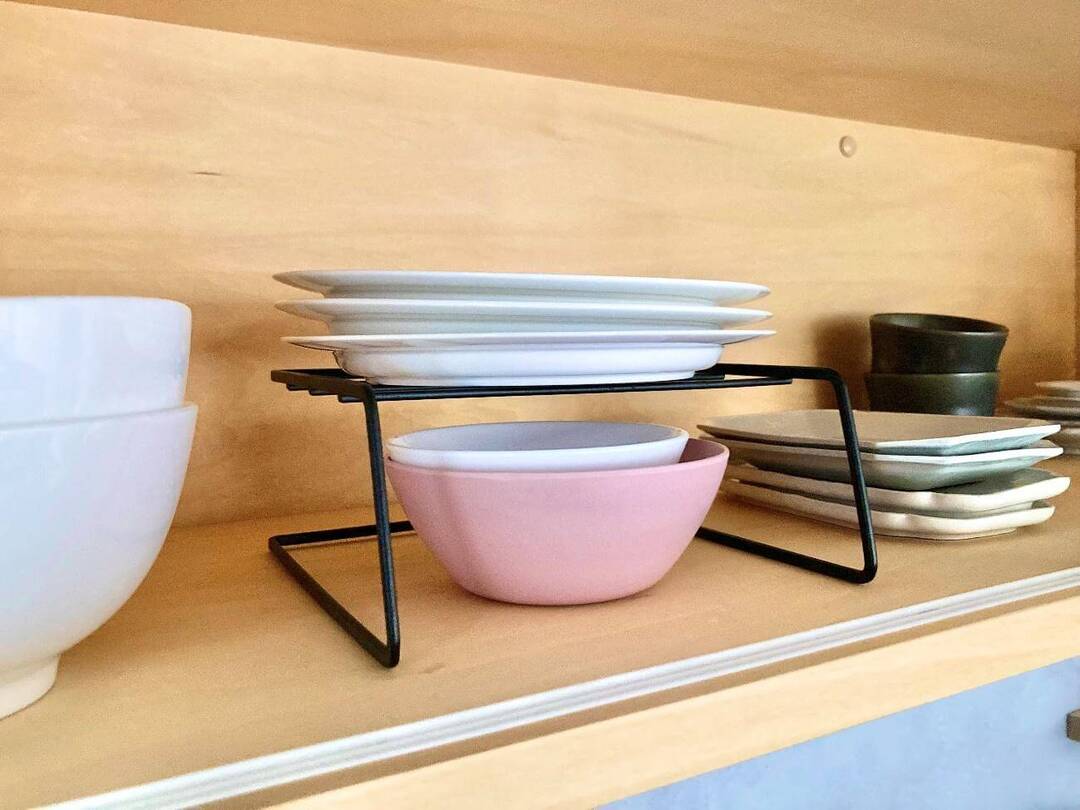 写真のようにディッシュラックを食器棚に設置すると、2段に分けることで取り出しやすく、収納量がアップ!複数並べれば、さらに空間を有効活用できそうです。