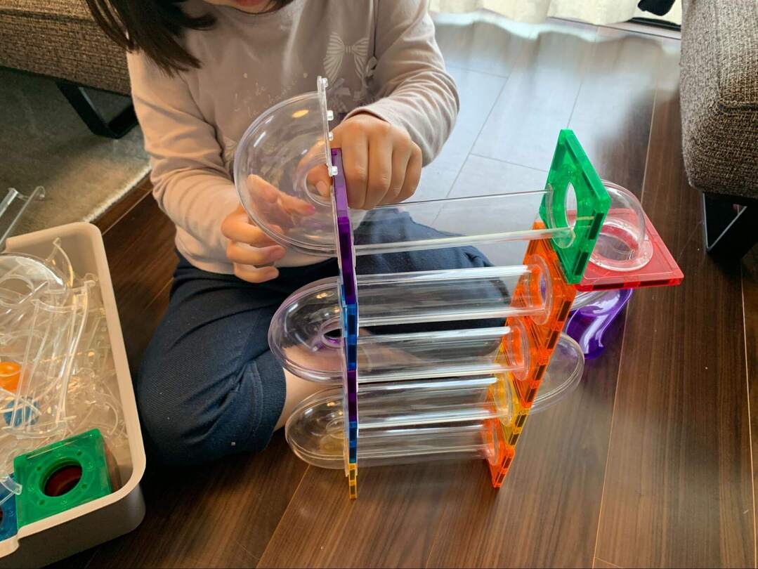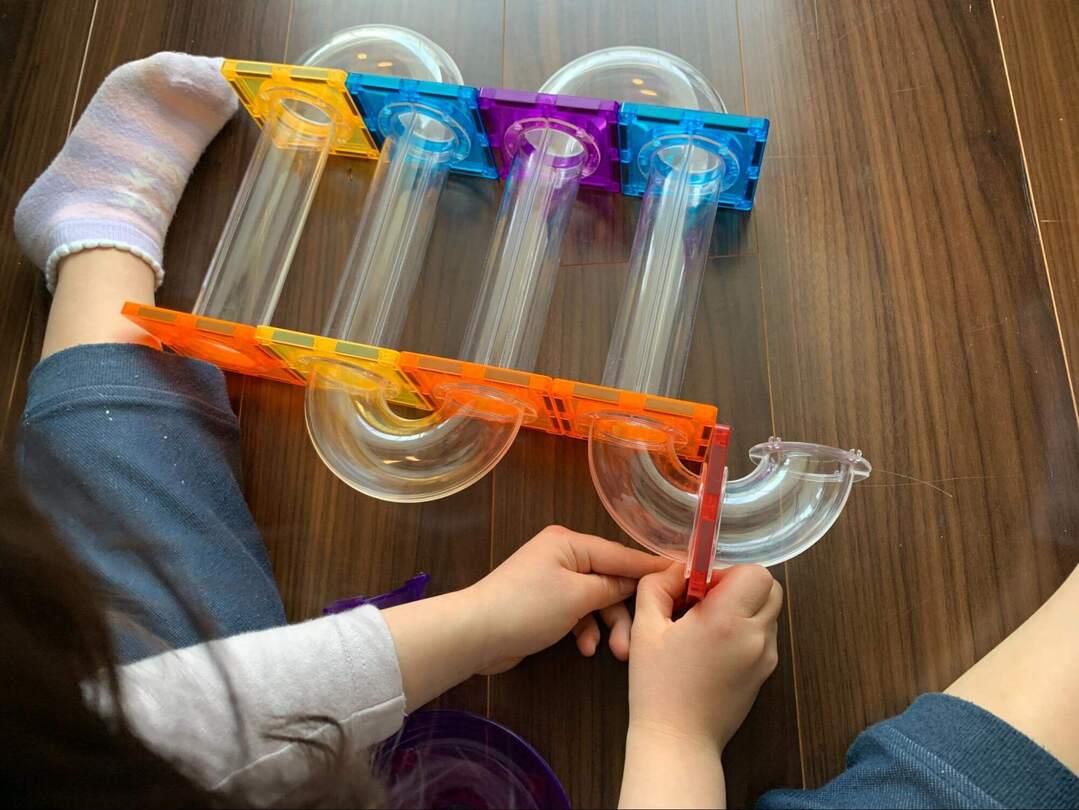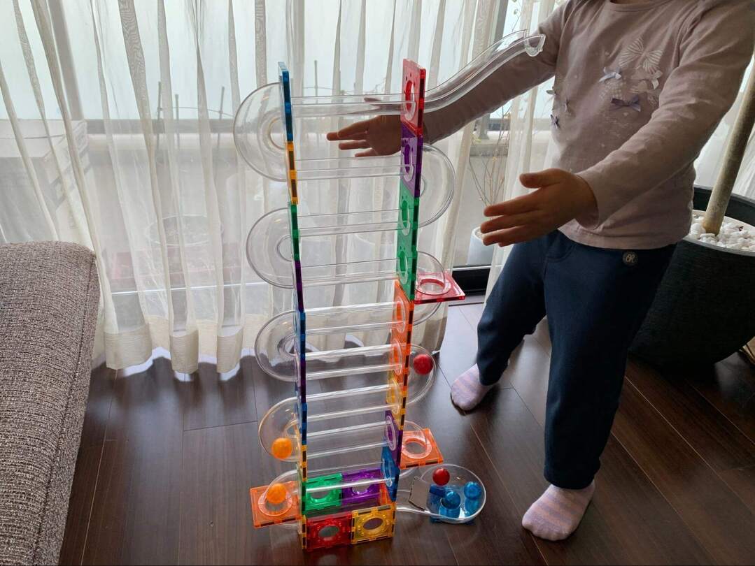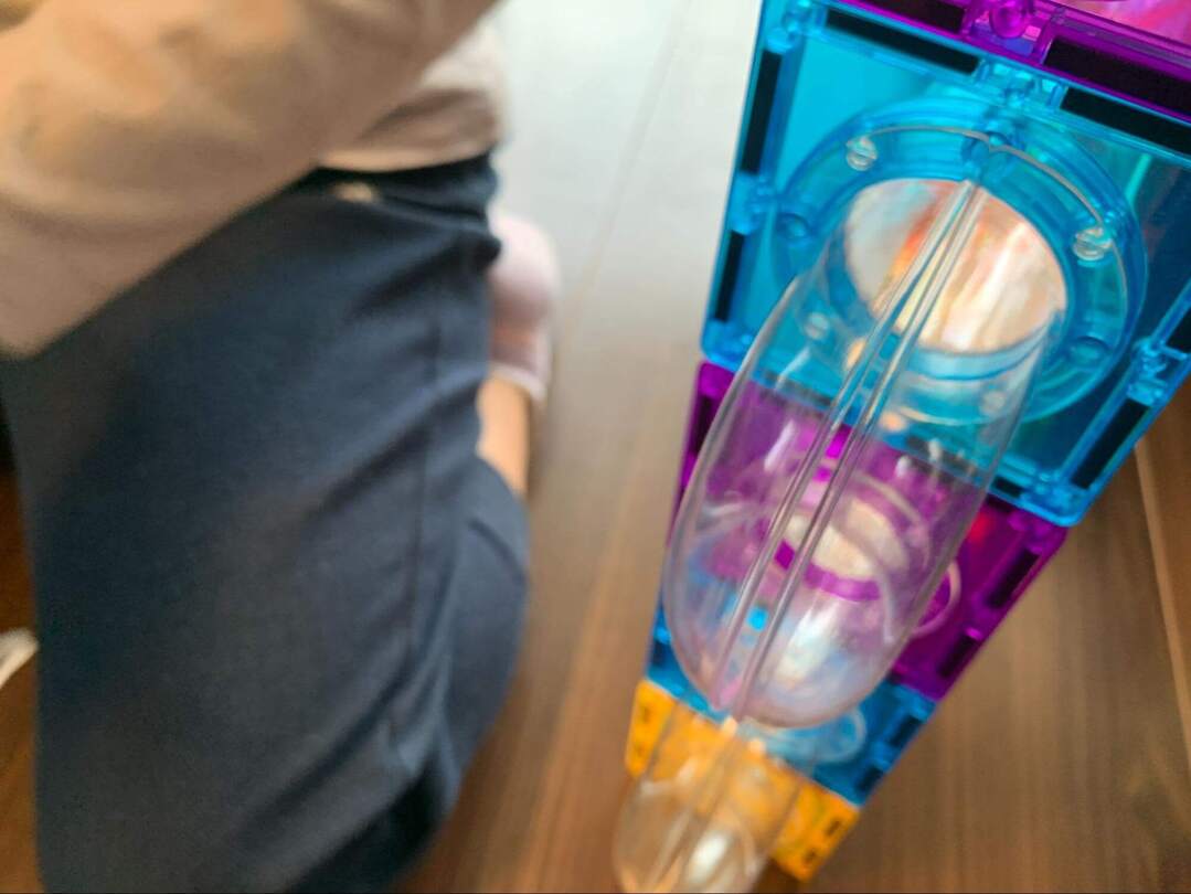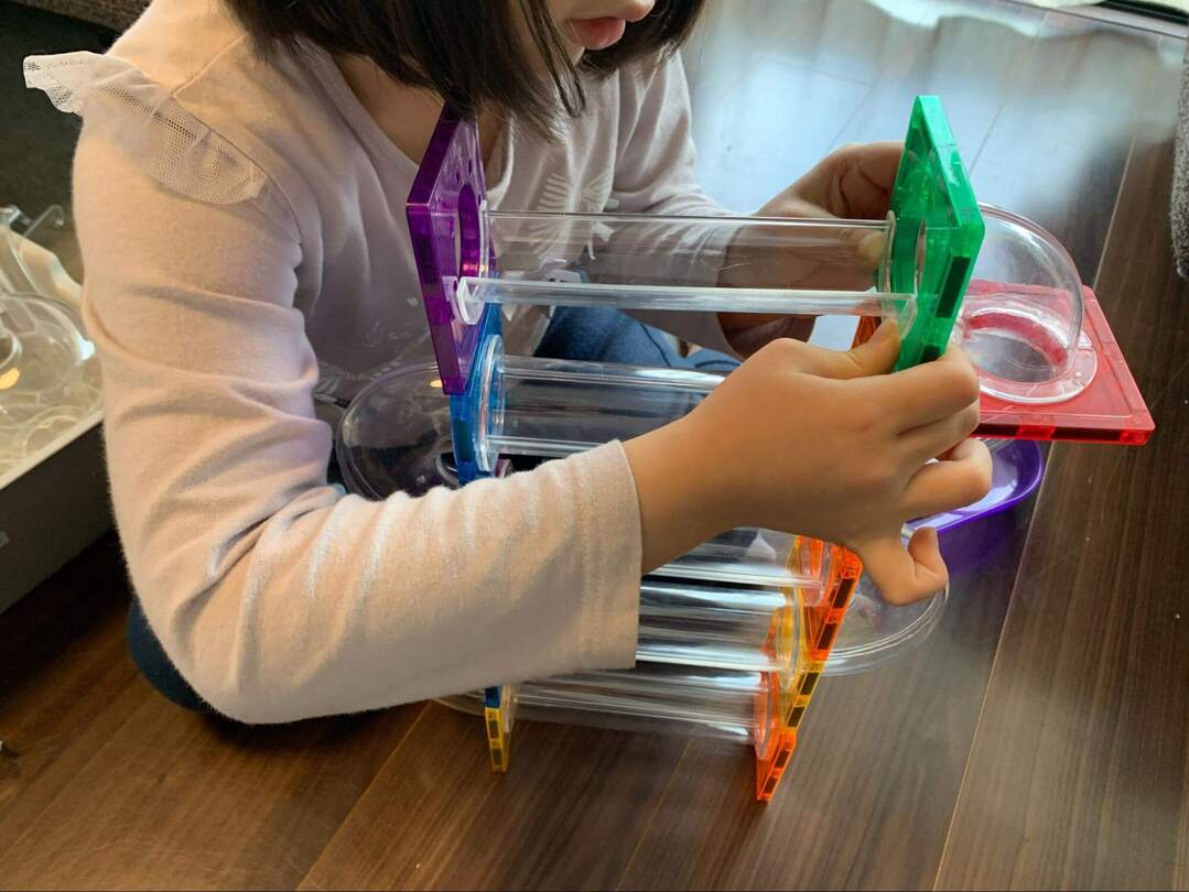 その華やかな見た目から、SNSの投稿でも人気のマグビルド。新商品「スローププラス」は、大人もハマってしまう魅力あるおもちゃでした。