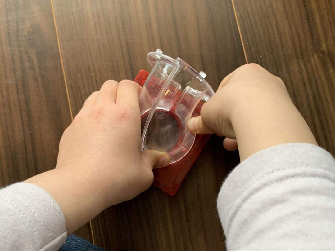 はめ込むときは、スロープの羽根の部分を親指と人差し指で挟むようにしてギュッと押すのがポイント。最初は付け外しに少しコツがいりますが、4歳でもすぐに要領を得てどんどん作れるようになりました。