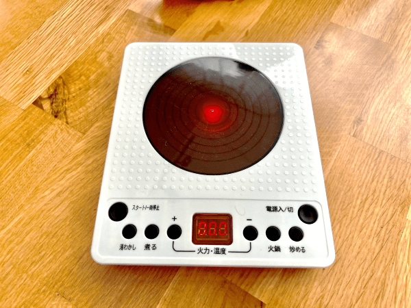 そしてこちらが「リアルすぎる」と話題のIHクッキングヒーターです。電池がついていないので、単3電池を3本用意しましょう。