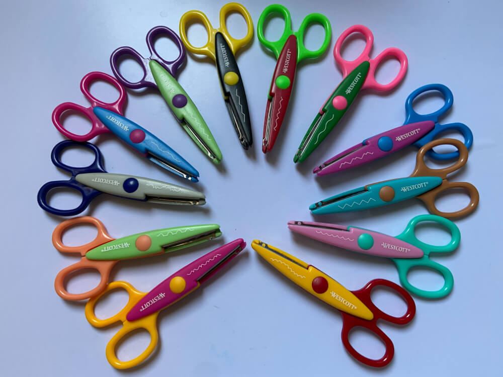 クラフトばさみとは刃の部分が特徴的な形をしていて、紙を波型やギザギザにカットできるはさみのこと。コストコでは12本入りのセットが、店頭の文房具コーナーとオンラインで取り扱いがあります。