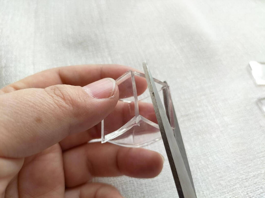 箱が完成したら、テープのフィルムをていねいに剥がしていきます。透明なので、剥がし忘れがないように注意してくださいね。