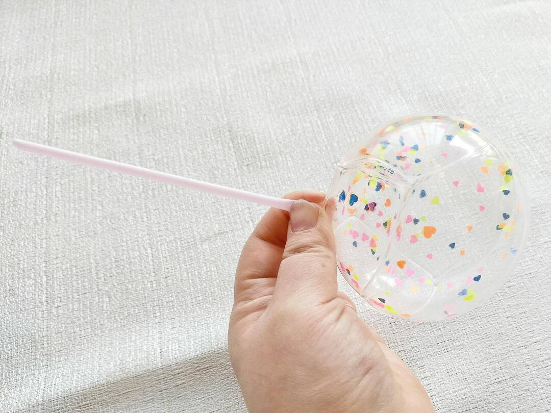 膨らませたら、ストローを差し込んでいるところをギュッと持ったまま、もう片方の手で素早くストローを引き抜きます。ここはちょっとだけ難易度が高め!