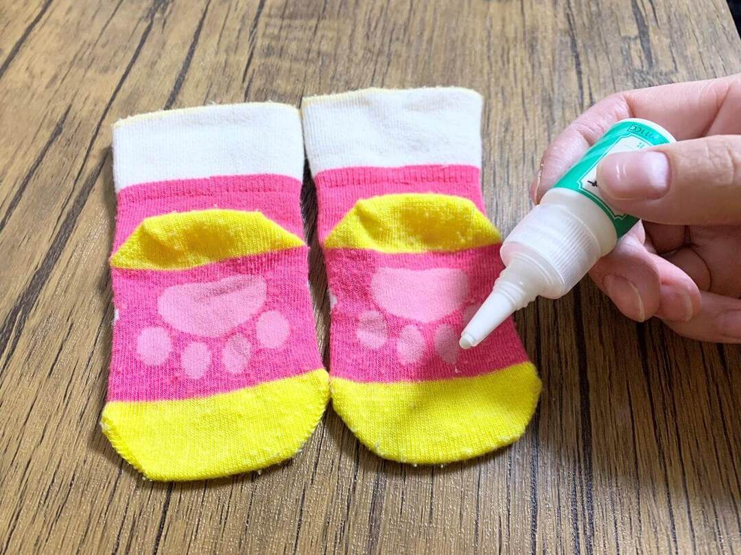 ダイソーの「すべり止め液」は、すべり止めがなかったり、すべり止めが劣化した靴下を使いやすくするアイテム。塗って乾かすだけなのに、簡単にすべり止めをつけられます。