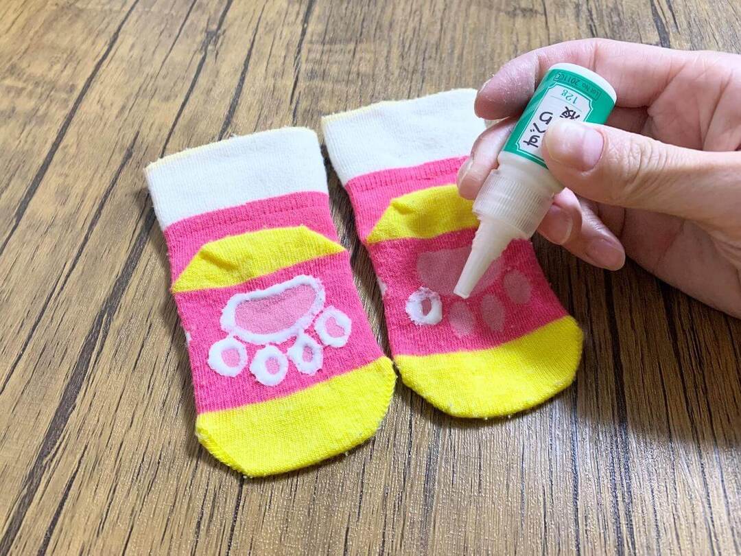 転倒防止に効果のあるつま先とかかとにもすべり止め液をつけたら完成!