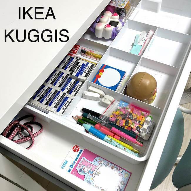 収納するものの種類や量にぴったりの仕切りアイテムを選ぶのは大変…という場合は、小川さんのお宅のように、IKEAの収納アイテム「KUGGIS(クッギス)」を使うのもおすすめ。