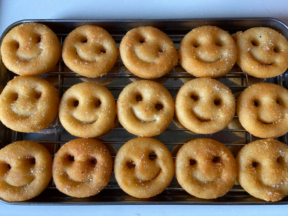 わが家の3人の子どもたちはフライドポテトが大好き。コストコには子どもたちも大満足のたっぷり大容量のコスパ最高ポテトが数種類販売されています。なかでも特に好評なのは、にっこりかわいい笑顔の形をしたまぁるいフライドポテトです。