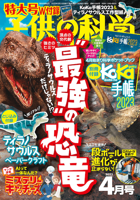 工作や実験の記事は、もの作りの楽しさや科学のおもしろさを体感でき、子どもの知的好奇心を刺激する内容に。恐竜のペーパークラフトや科学ポスターなど、毎号凝った付録も人気です。一流の研究者やエンジニアにも、子供の科学を子どものころ愛読していた人が多くいるのだそう!
