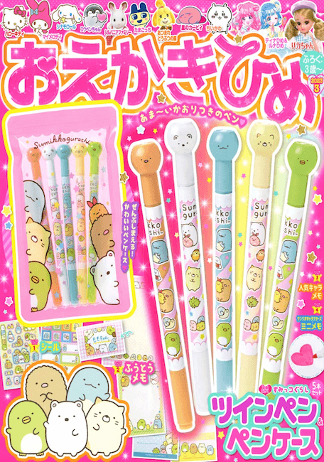 人気キャラと遊べるゲームも多く、低学年や中学年の小学生女子を中心に人気があります。すみっコぐらしの消しゴムガチャやポーチなど、付録は実用的なものが多くとっても豪華!