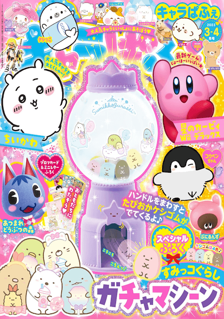 『キャラぱふぇ』はかわいいキャラクターや楽しいゲームに関する流行がたくさん詰まった雑誌です。『星のカービィ』や『あつまれどうぶつの森』など、ゲームキャラクターの漫画も掲載しているのが特徴的。