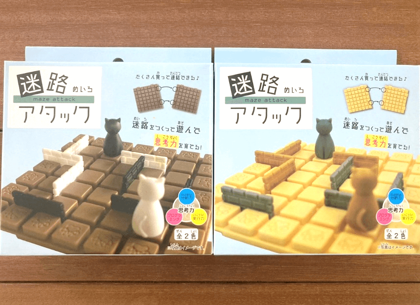単純そうに見えて奥の深い「迷路アタック」。ねこをどう動かすか、塀をどう使うか考えながら対戦するので、パッケージにある“思考力を育てる”にも納得です。なにより大人も子どももハマる楽しさが魅力!ぜひ購入して、子どもと思考力を養ってください。