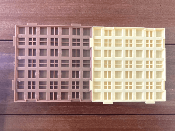 商品内容はどちらとも同じ。クリーム色の基盤にグレーと黄土色の塀とねこのセット、茶色い基盤に白と黒の塀とねこのセットと、色のみの違いでした。