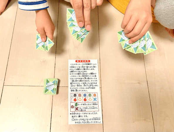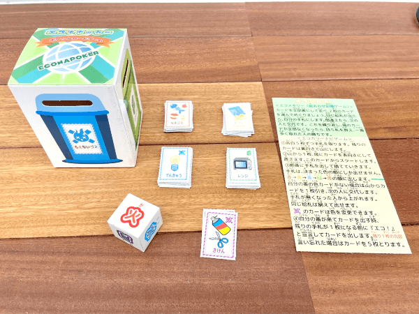セリアのエコナポーカーは、ルールも簡単で、楽しみながらゴミの分別への理解が深められるゲームでした。また、ダイスで「土曜日」が出ると1回休みになったり、カードを大量に取らないといけなかったりとゲーム性も高く、大人も子どもと一緒になって楽しめます。ぜひ遊んでみてくださいね。