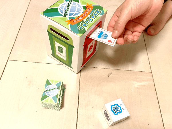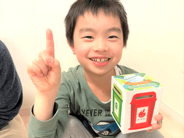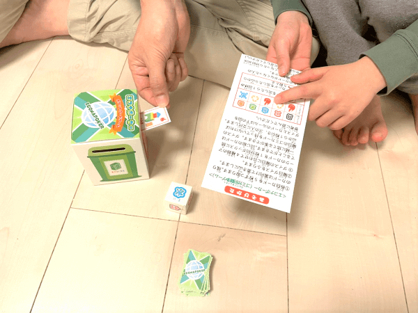 5歳の次男は、「ゴミのカードを分別ボックスに捨てるのが楽しかった。またみんなでやりたい!」とのこと。ゲームの所要時間は20分程度。家族みんなで大いに盛り上がりました。