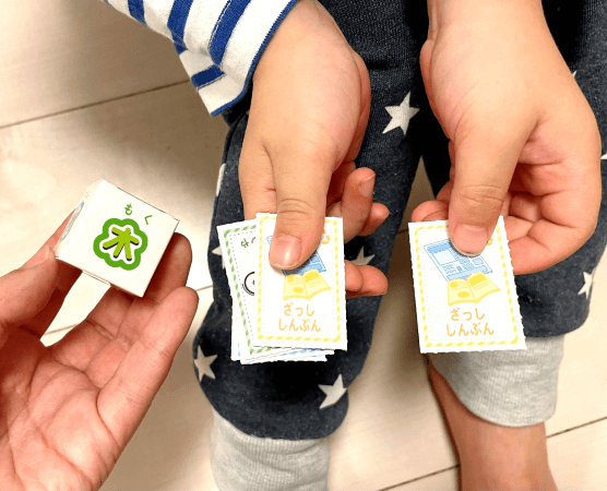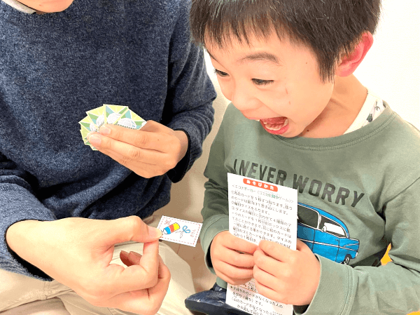 遊び方カードはふりがなつきなので、7歳の長男は自分で読んで、ルールをしっかり理解していました♪字が読めなくても、ゴミカードにマークが入っているので問題なく遊べます。