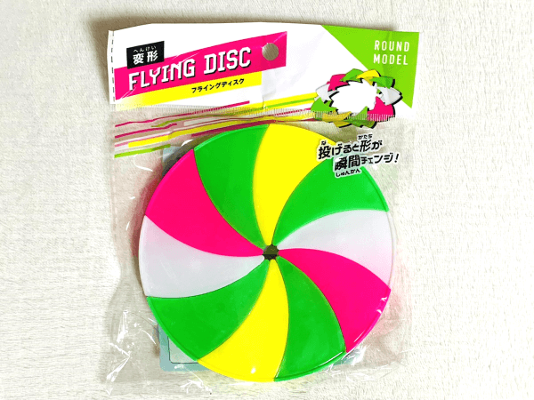 セリアで見つけたのは「変形フライングディスク」(110円・税込)。フリスビーのように投げると形が瞬時にチェンジする、子どもが好きな要素が詰まったおもちゃです。