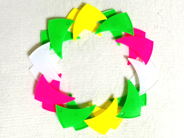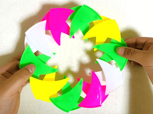 一般的なフリスビーは円形のままですが、変形フライングディスクは投げた瞬間に花のように開いて変形するのが特徴!まるで手裏剣のようです。