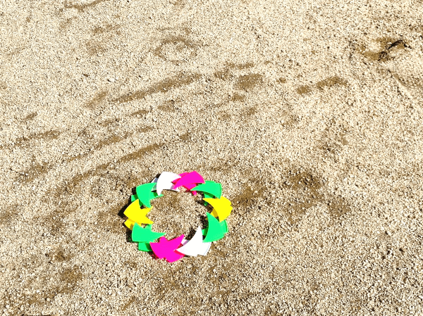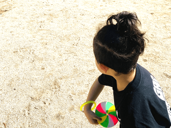 さらに、形が変わった状態の変形フライングディスクを回収しに行った際、「ママ!これ影がお花みたいできれいだよ♡」と教えてくれました。ただ投げて遊ぶだけでも楽しいのですが、影もきれいだと発見した次男はとても得意気でうれしそうでした。