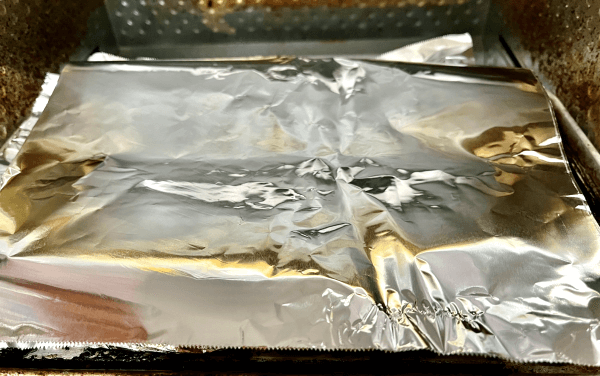 網の上にアルミホイルを敷き、湿気たハッピーターンを並べます。