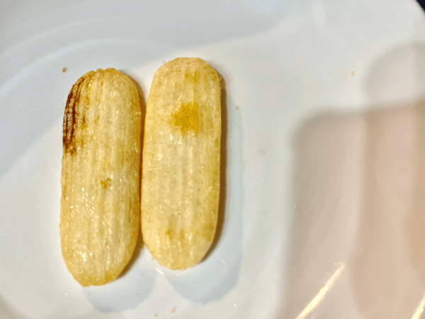 すると、見事ほんのり色がつく程度の焼き加減に!ただし、ハッピーターンの特徴である「粉感」はなくなるので、完全復活させたい場合には別で「ハッピーパウダー」をつけるのがおすすめです♪
