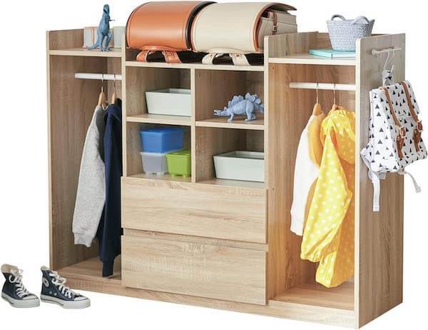 また洋服も一緒に準備したいならハンガーラック付き、手提げなどを一緒に収納したいならフック付き、デスクを兼用させたいならデスク付きなど付属品も変わってきます。既存の収納との兼ね合いも考えながら、何を一緒に収納するのかも決めておくとスムーズです。