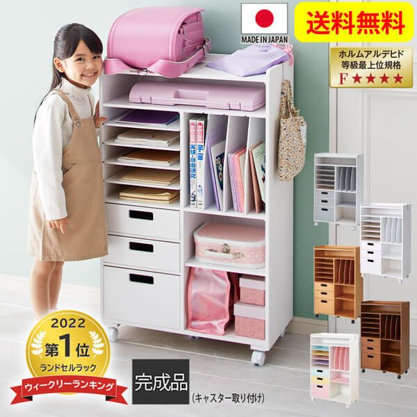 教科書からドリル、文房具、習字道具など、学校に必要なものが全部収納できて、その場で片付けと翌日の準備ができる大容量ランドセルラック。