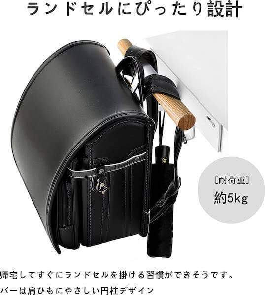 意外と場所を取るランドセルにはランドセルラックがあるととっても便利。置く・かけるだけで見た目もスッキリと片付くのはもちろん、毎日同じ場所に置くことで子どもの片付けの習慣も身につきます。