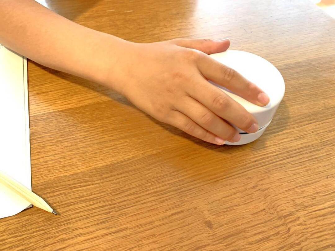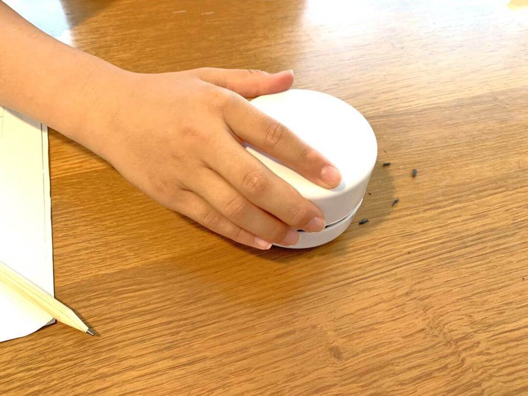 さっそく「乾電池式卓上クリーナー」を小学3年生の長男が使ってみました。