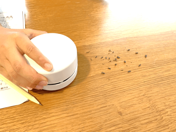 きれいになるのが楽しいのか、長男が積極的にテーブルを掃除してくれるようになったのもうれしい効果でした。「乾電池式卓上クリーナー」のおかげで、リビング学習後の消しゴムのカス問題がノンストレスに!