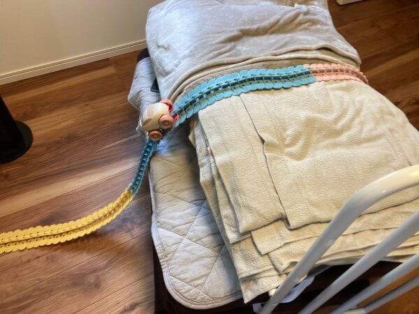 続いては、小5のお姉ちゃんも加わって作ったふとんの山越えコース!こちらも難なく越えていきます。