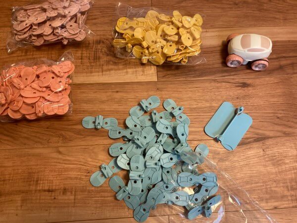 中に入っているのは、車が1台とスタート時に使う大レール、そして4色の小レールがたっぷり138個も入っています!