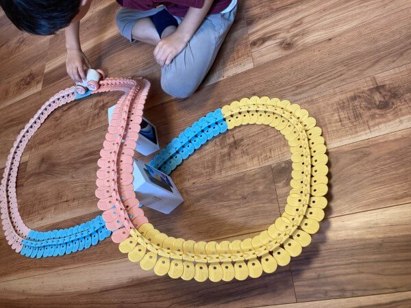 箱を開けて早々に遊び方を理解した息子は、さっそくコースを作り始めました。